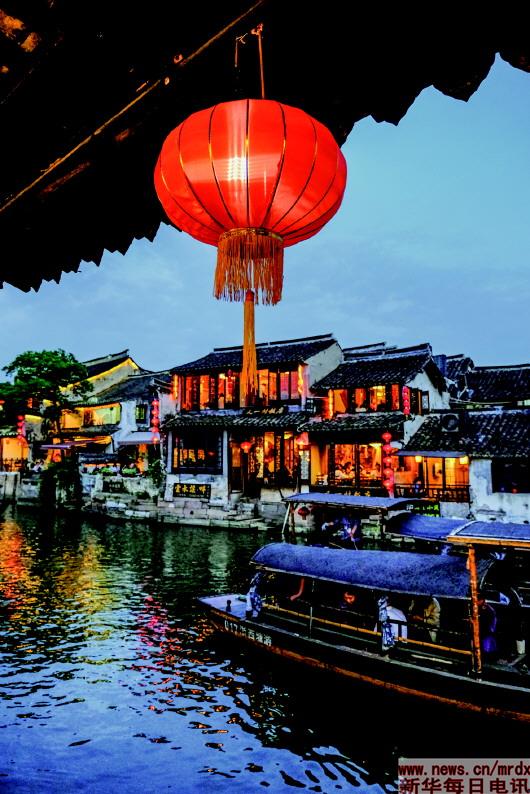 | 游客在浙江省嘉善县西塘古镇游览(4月21日摄)。 本报记者徐昱摄 |