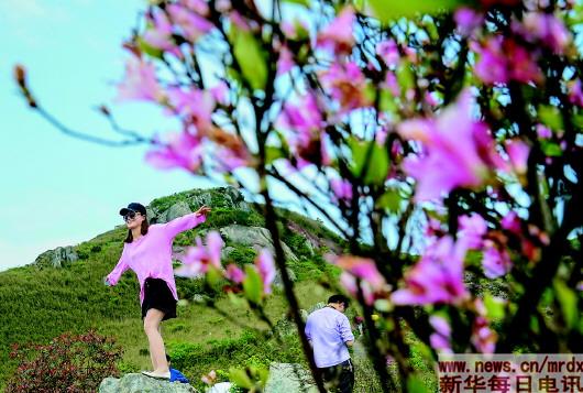 | 游客在浙江省宁波市奉化区西坞金峨杜鹃花文化旅游节开幕当天观赏杜鹃花(4月22日摄)。 本报记者殷刚摄 |