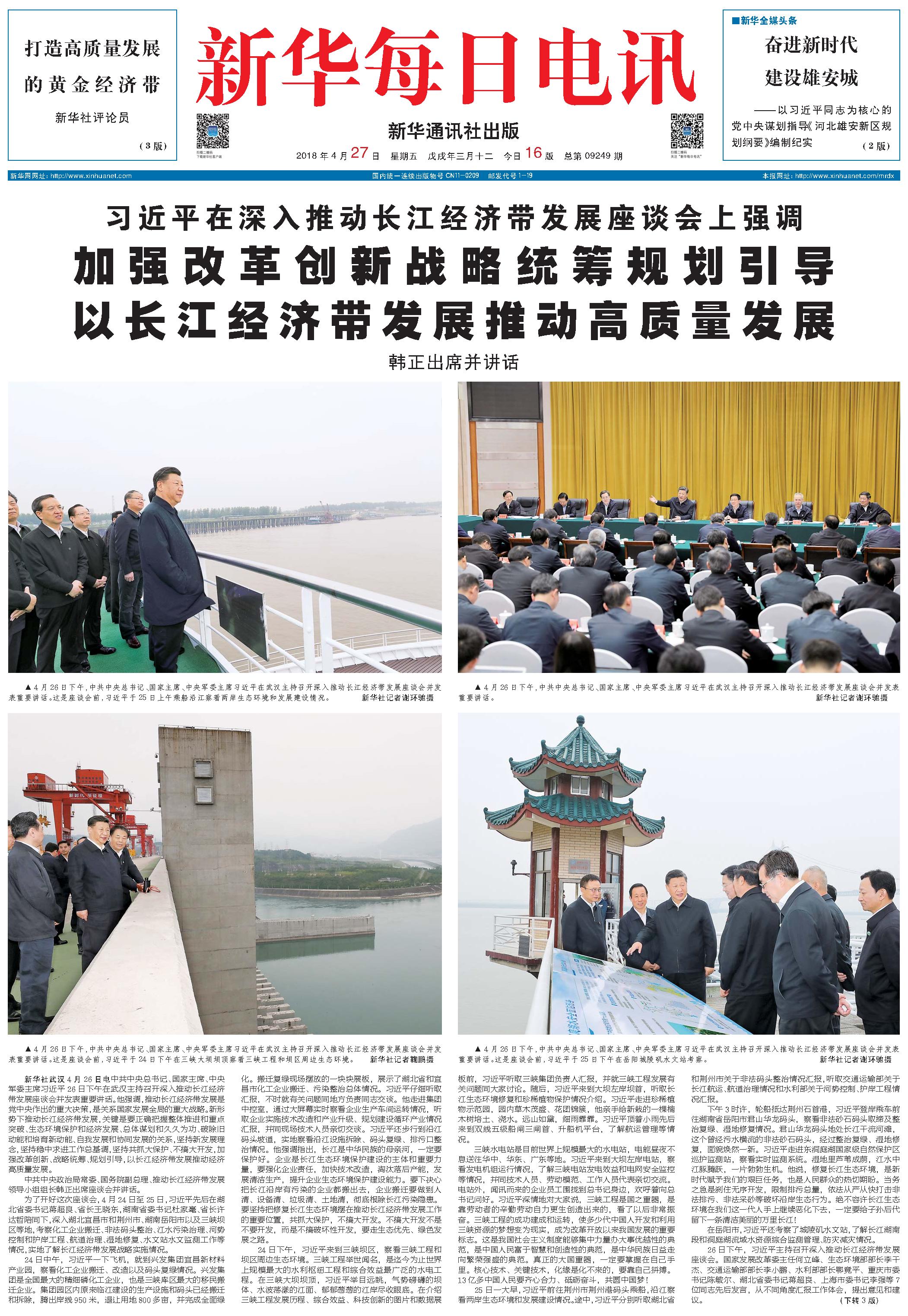 习近平在深入推动长江经济带发展座谈会上强调 加强改革创新战略统筹规划引导 以长江经济带发展推动高质量发展 韩正出席并讲话
