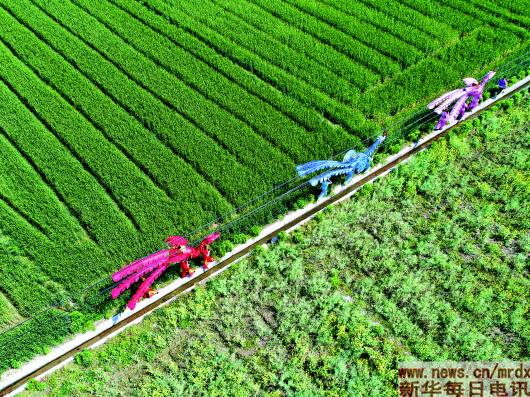 4月25日,民俗表演队在表演传统民俗“五凤朝阳”。杭州市临安区太阳镇通过举行乡村民俗展演,助推当地乡村旅游产业。