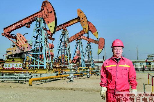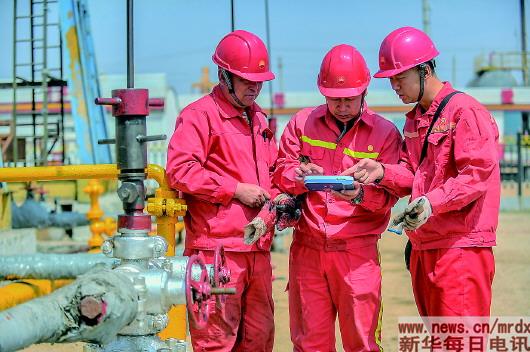 | 柳转阳(下图中),辽河油田公司曙光采油厂采油作业一区新9号站站长。参加工作25年,他先后解决50多项生产难题,被一线员工称为“稠油专家”(4月26日摄,拼版照片)。 新华社记者潘昱龙摄 |