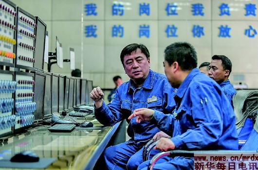 ▲李俊(下图左一),中国石油抚顺石化公司石油二厂重油催化车间工艺四班班长。参加工作27年,他从一名技校生成长为技术专家。他带领团队征服了复杂的现代化炼油装置,为企业创造了宝贵财富(4月4日摄,拼版照片)。