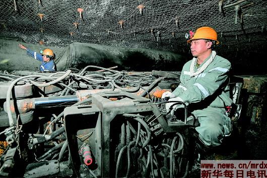 | 郝忠全(下图右),辽宁铁法能源有限公司综掘机司机。参加工作25年,他由一名普通工人成长为矿上的生产骨干。他带领了一支“特别能战斗”的优秀班组,在矿井下创造出多项掘进记录(4月23日摄,拼版照片)。新华社记者杨青摄 |