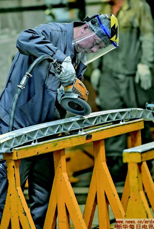 ▲李学忠在中车长客股份公司铝车体二车间打磨材料(4月24日摄)。