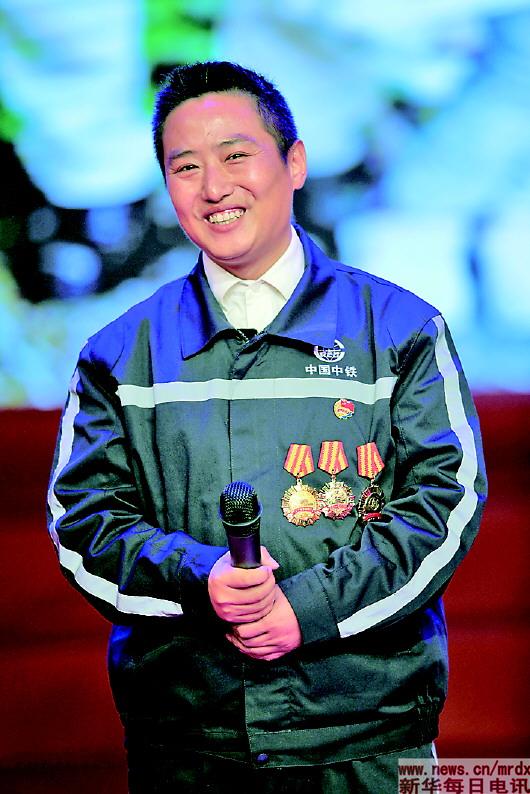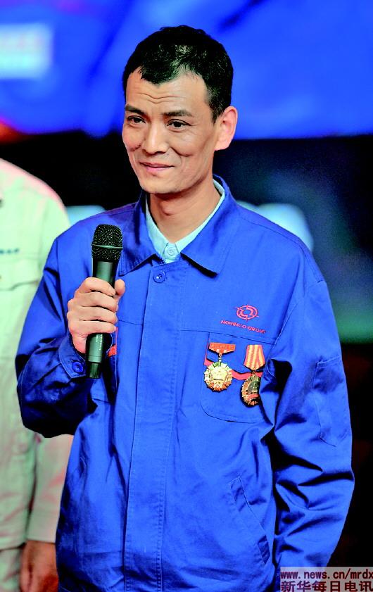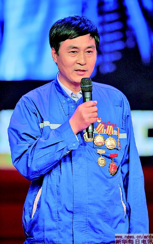 ▲哈尔滨第一机械集团有限公司车辆事业部工人冯世毅在“最美职工”发布仪式上(4月25日摄)。 |