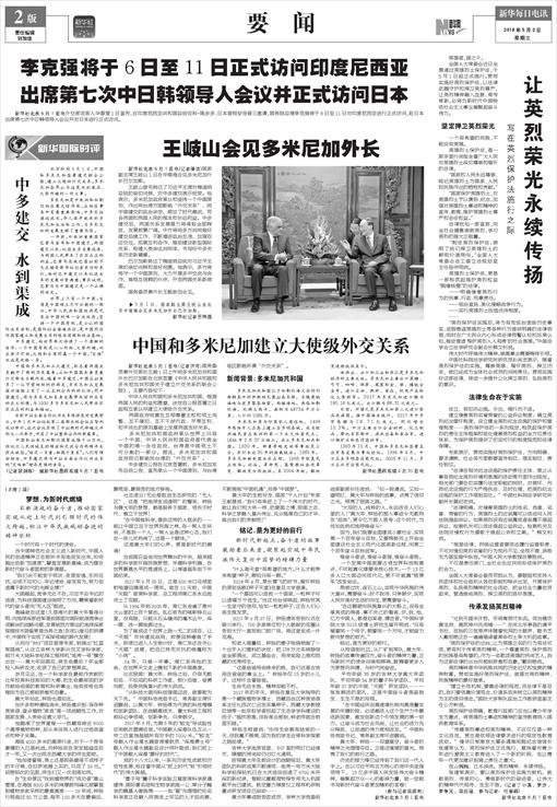 中国和多米尼加建立大使级外交关系