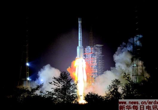 | 5月4日0时06分,我国在西昌卫星发射中心用长征三号乙运载火箭,成功将“亚太6C”通信卫星发射升空,卫星进入预定轨道。新华社发(张铮逸摄)