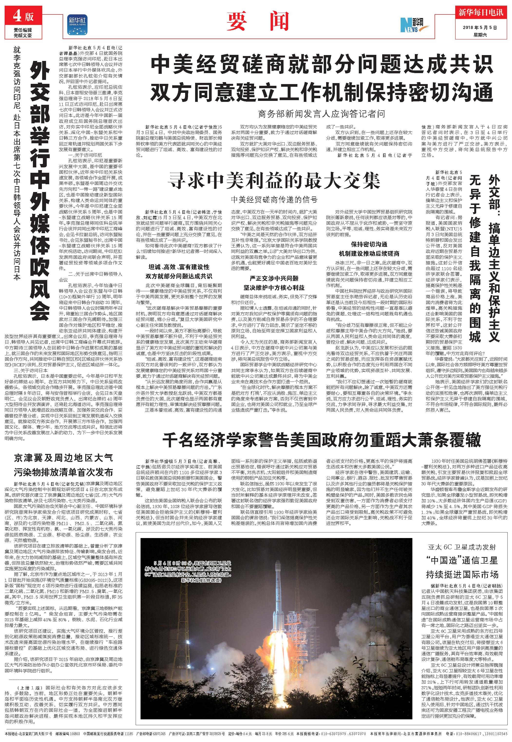 中美经贸磋商就部分问题达成共识双方同意建立工作机制保持密切沟通 (2018年05月05日) |