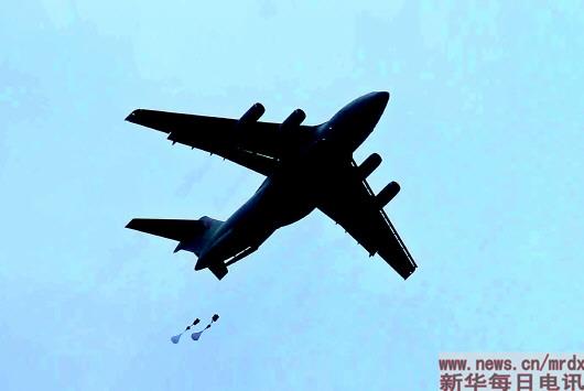 中国空军大型运输机运-20与空降兵部队联合开展空降空投训练(资料照片)。中国空军新闻发言人申进科5月8日发布消息,中国自主发展的运-20大型运输机,近日首次与空降兵部队联合开展空降空投训练,这是中国空军战略投送能力、远程空降作战能力建设的又一次跃升。