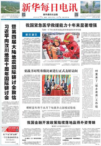 | ( 2018-05-13 ) 稿件来源:新华每日电讯 要 闻 |