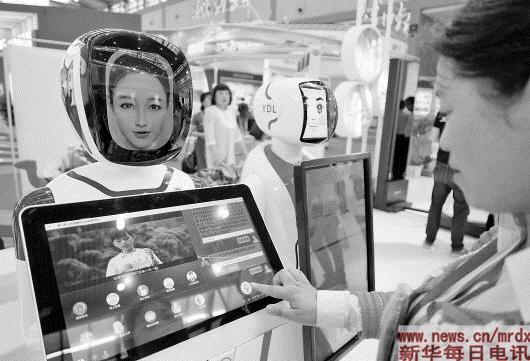 日前,在西安举办的第三届丝绸之路国际博览会暨中国东西部合作与投资贸易洽谈会上,众多不同形态、不同功能的智能机器人成为展会的亮点,吸引许多观众和客商的目光。新华社记者邵瑞摄