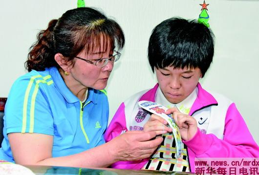 “每天都是忙忙碌碌的,早晨吃完饭就带着两个孩子来家庭寄养工作服务站,大的在手工室学刺绣、穿珠,小的在特教室进行康复训练,上午下午,一直坚持来。”刘淑琴不仅要当孩子的母亲,还要当她们的老师、陪读和康复训练师。