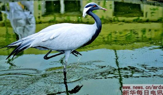 | 4月29日,莫莫格国家级自然保护区里一只被救护的蓑羽鹤在栖息。 |