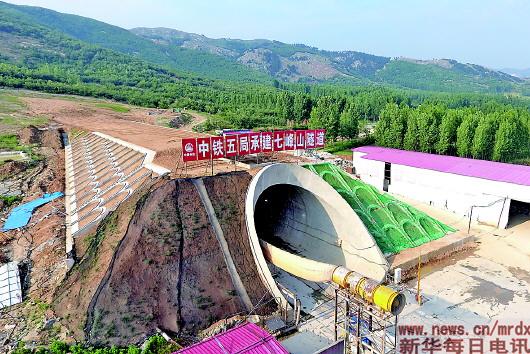 5月14日,郑(州)万(州)高铁七峰山隧道贯通。七峰山隧道位于河南南阳方城县境内,全长5152米。新华社发(李嘉南摄)