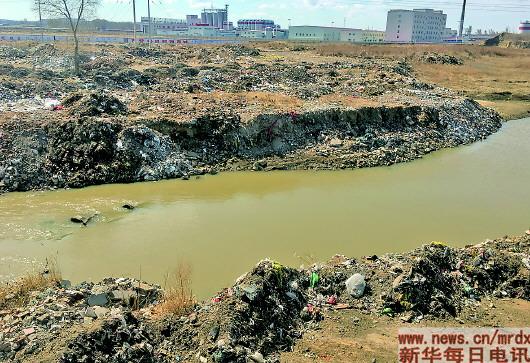 在内蒙古赤峰市宁城县天义镇岗岗营子村,西辽河上游的老哈河从垃圾场中间流过(4月7日摄)。新华社记者王靖摄