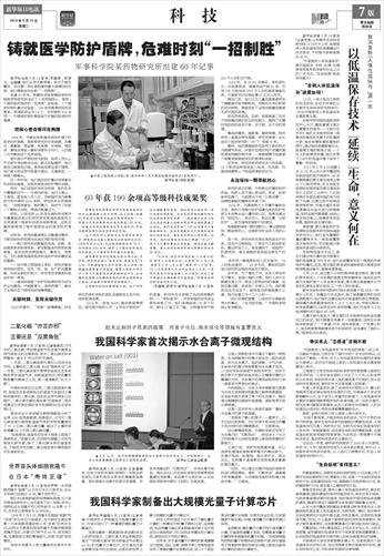 那年,以研究所40多项尖端科研成果作为重要组成部分的研究项目获得我国医药卫生领域首个国家科技进步奖特等奖,这标志着我国拥有了维护国家安全的医学防护盾牌。