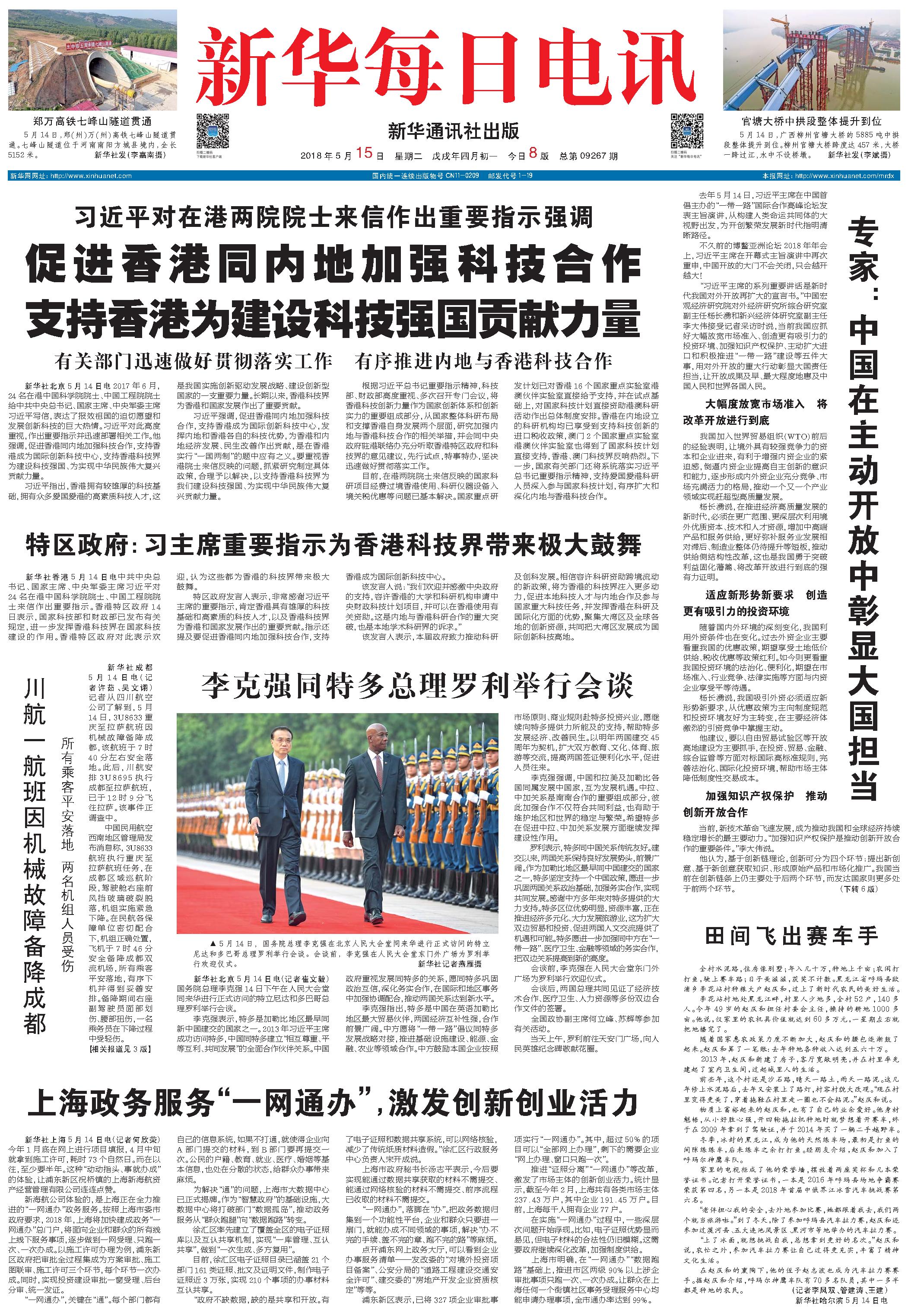 促进香港同内地加强科技合作支持香港为建设科技强国贡献力量 (2018年05月15日) |