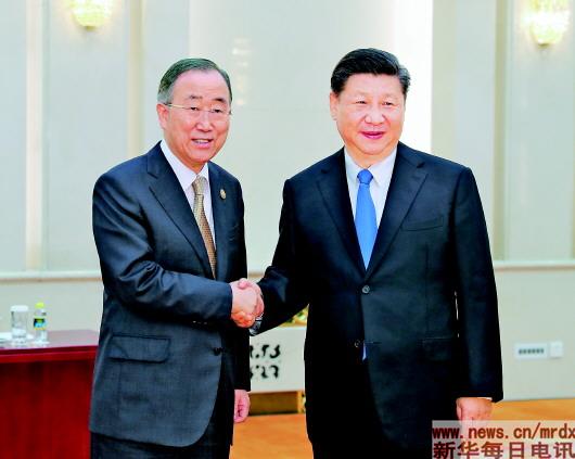 ▲5月15日,国家主席习近平在北京人民大会堂会见博鳌亚洲论坛理事长潘基文。新华社记者谢环驰摄 |