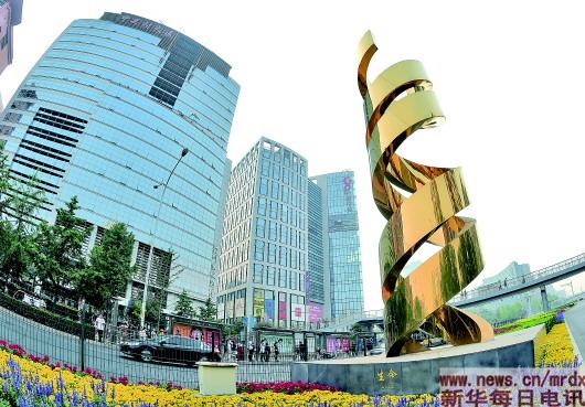 位于中关村大街、题为《生命》的雕塑(2018年5月14日摄)。新华社记者罗晓光摄 |