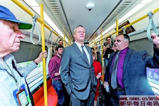 当天,马萨诸塞州州长查理·贝克、州运输部长斯蒂芬妮·波拉克、美国中车麻省公司副总裁贾波等出席活动并试乘新车。