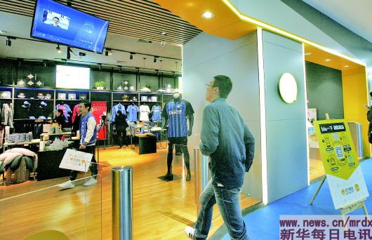 上海一名消费者通过面部识别进入位于杨浦区的“无人店”(2017年11月6日摄)。新华社记者方喆摄