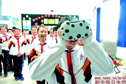| ▲大堡台汉墓博物馆新技术送展览进校园。4月9日,北京昌平区城北中心东关小学,“大葆台汉墓遗址虚拟现实展示系统”正在五年级的教室里进行展示。 本版照片均由受访者提供 |