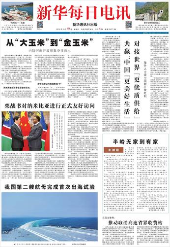| ( 2018-05-19 ) 稿件来源:新华每日电讯 要 闻 |