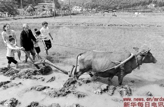 ▲5月13日,在江西萍乡市湘东区白竺乡大丰村,游客体验传统农耕劳作。当日,江西萍乡市湘东区白竺乡大丰村举办乡村旅游文化节,吸引众多周边县区的游客。