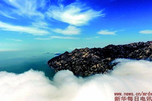 山东青岛崂山风景区5月19日至20日出现云海景观,雾气缭绕,笼罩山峰,与远处的大海交相呼应,景色迷人。