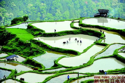 5月20日,在贵州黎平县尚重镇洋洞村,当地农民牵着近千头耕牛走进田间参加传统农耕活动,迎接“小满”节气。