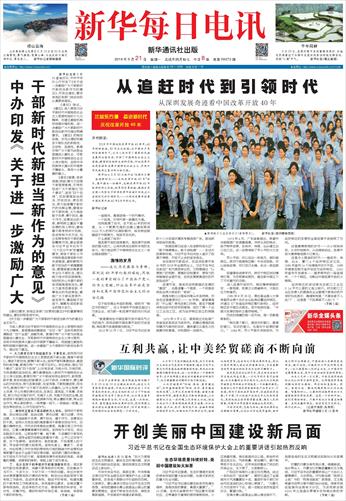 | ( 2018-05-21 ) 稿件来源: 新华每日电讯头版新闻 |