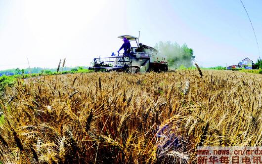 5月23日,在湖北襄阳,农民驾驶农机收割小麦。小满节气过后,多地小麦陆续成熟,农民抓紧农时开镰收割。