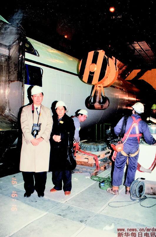 ▲1992年在欧洲核子研究中心(CERN)地下隧道里采访著名物理学家丁肇中(左)。