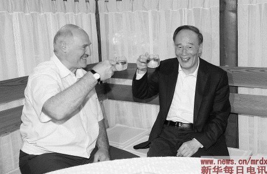 | 新华社明斯克5月29日电(记者胡晓光、魏忠杰)应白俄罗斯政府邀请,国家副主席王岐山5月27日至29日访问白俄罗斯,在明斯克分别同卢卡申科总统、科比亚科夫总理举行会见会谈。