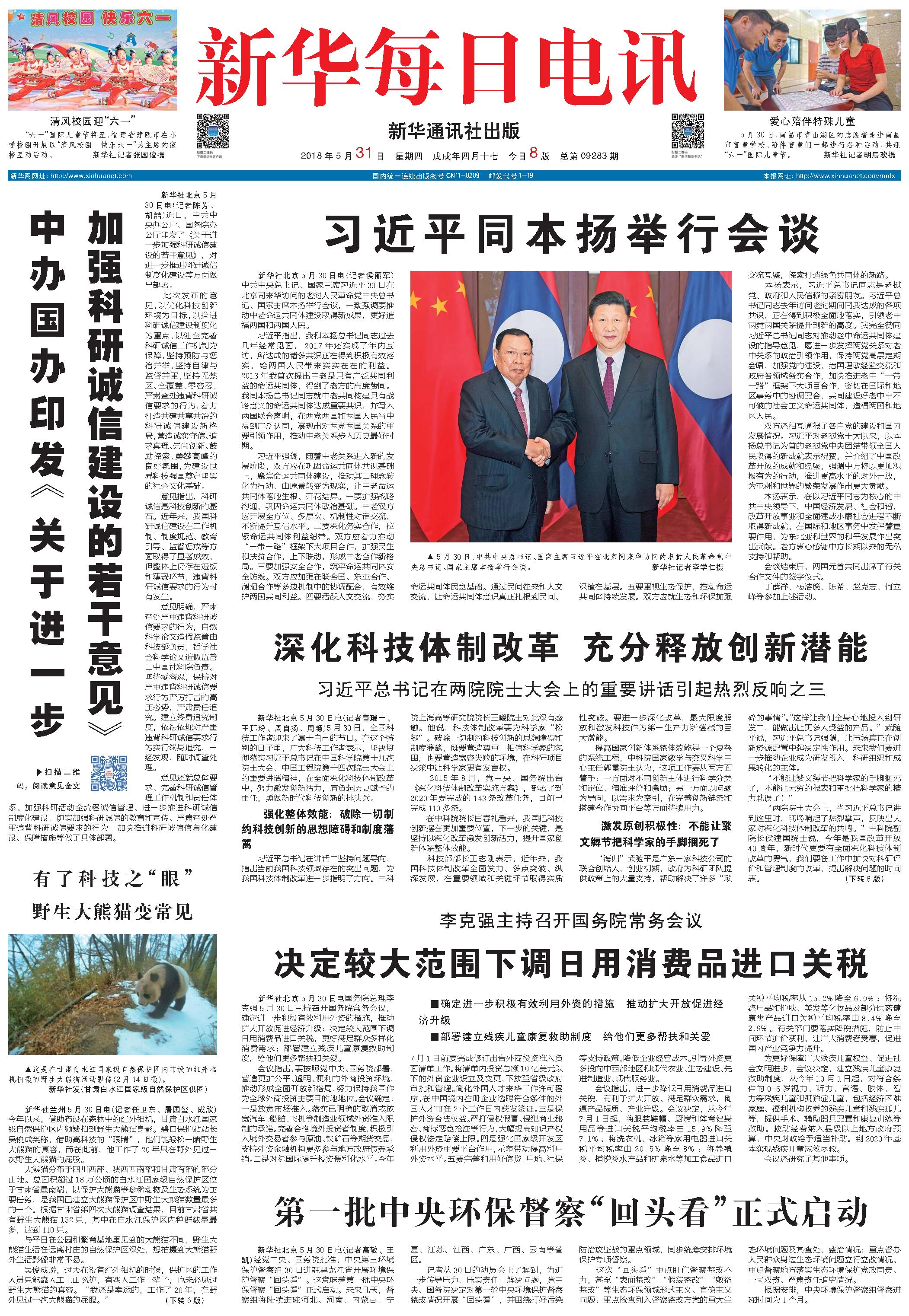 深化科技体制改革 充分释放创新潜能 (2018年05月31日) |