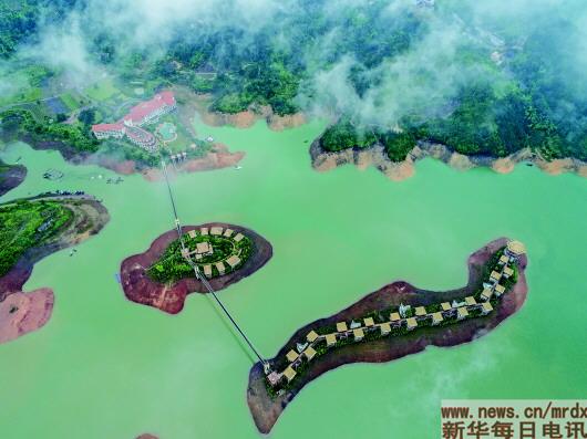 空中俯瞰浙江省丽水市云和县云和湖旅游景区(5月31日无人机拍摄)。新华社记者徐昱摄 |