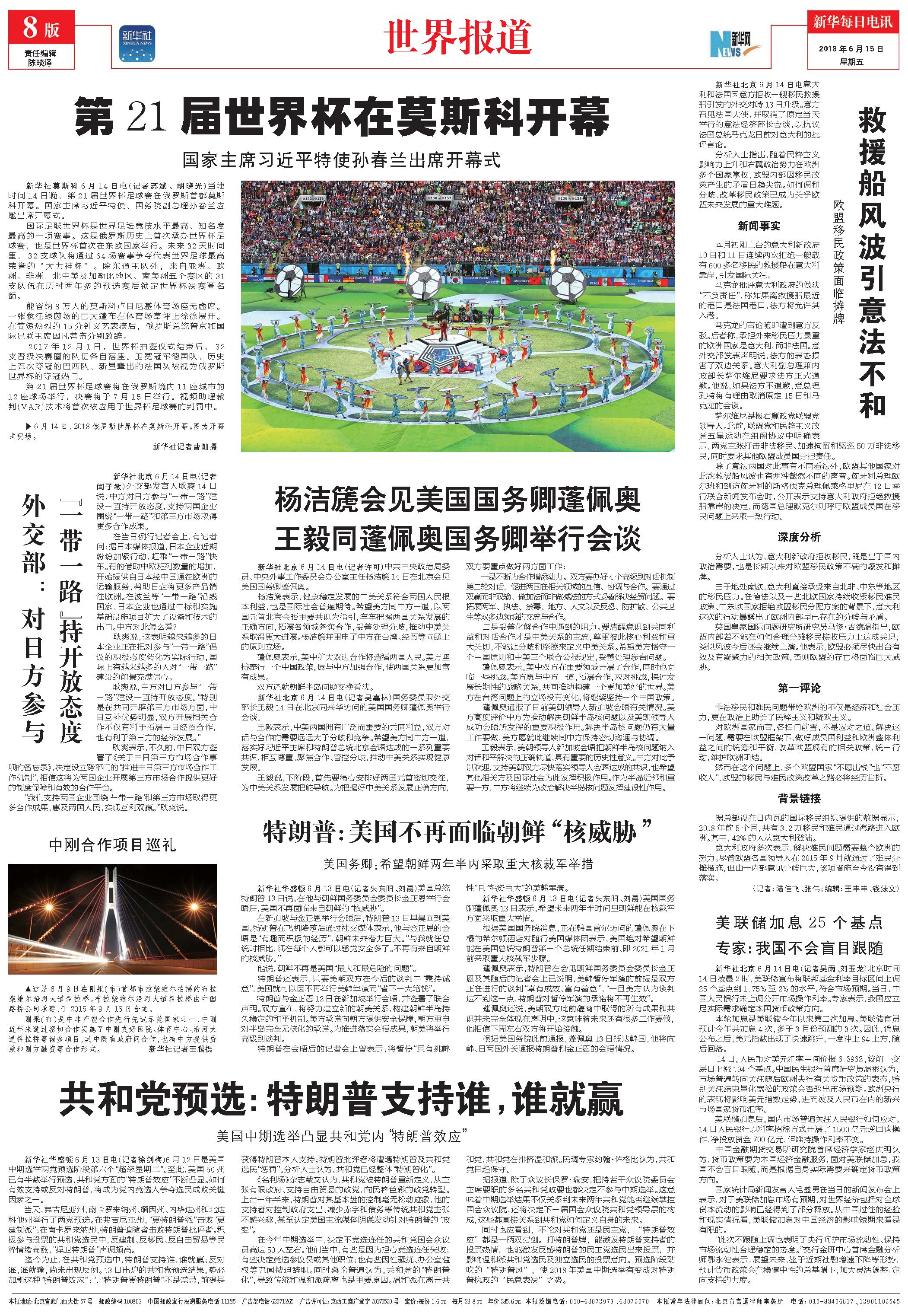 外交部:对日方参与“一带一路”持开放态度 (2018年06月15日) |
