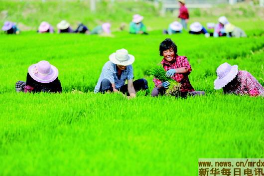 6月21日,江苏淮安的农民在移栽水稻秧苗。当日是夏至,各地农民抢抓农时进行夏收、夏种、夏管工作。
