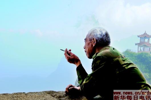 冯开平喜欢倚靠在悬崖边的护栏上,俯瞰山崖下河南林州境内的万家灯火。记者仔细打量他,中等偏瘦身材,满脸皱纹,穿着儿子们穿剩下的衣服。他不爱说话,只是深深地一口接一口地抽着烟,烟雾爬上他满头的白发。