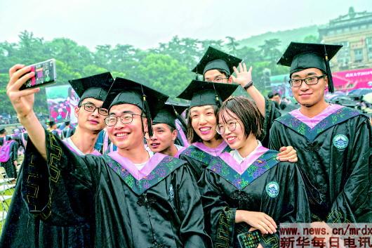 ▲6月22日,武汉大学毕业生在毕业典礼上合影留念。