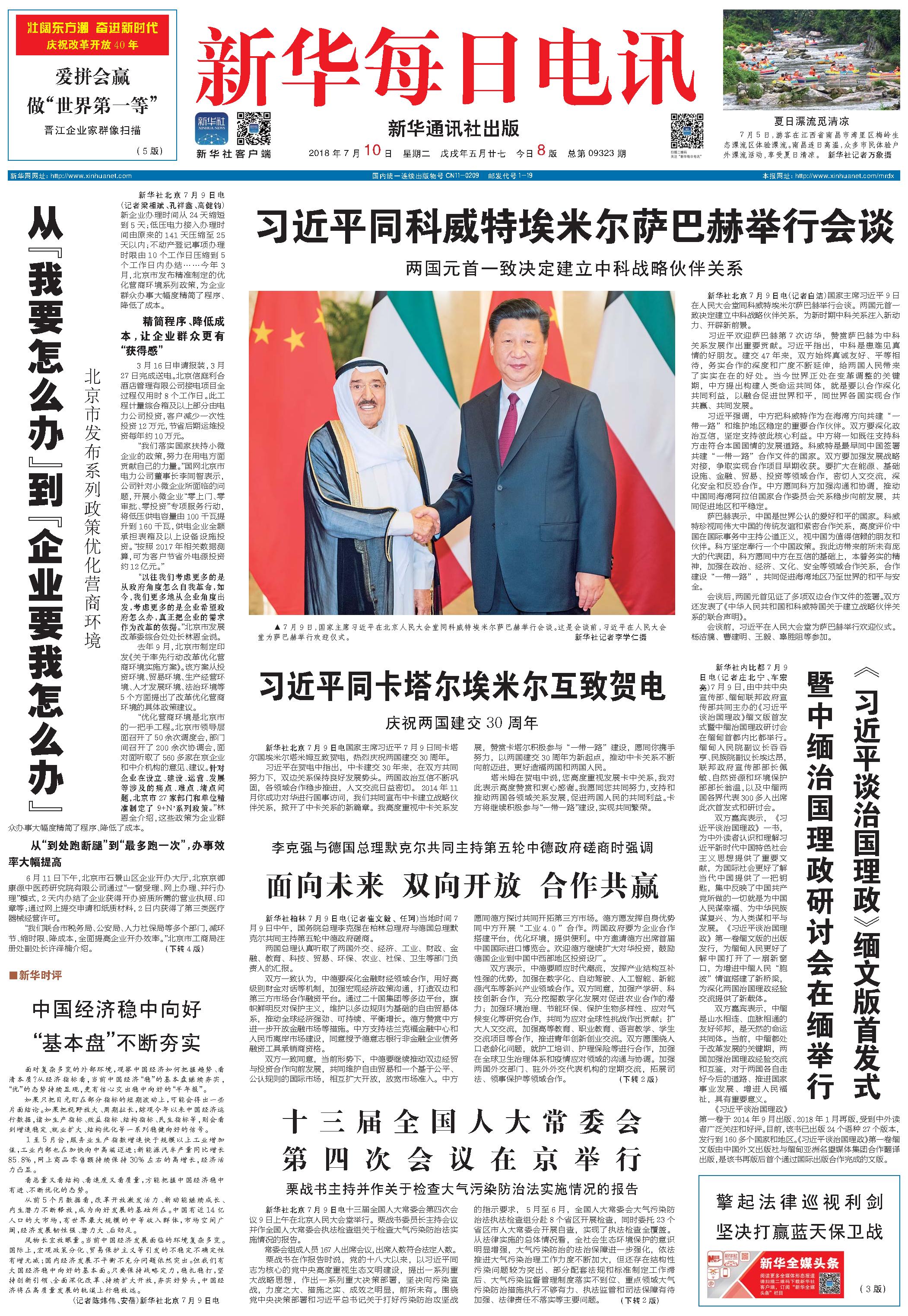 习近平同科威特埃米尔萨巴赫举行会谈 (2018年07月10日) |
