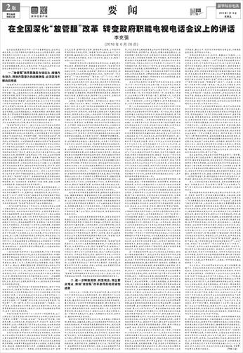 在全国深化“放管服”改革 转变政府职能电视电话会议上的讲话 |