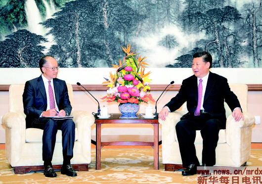 7月16日,国家主席习近平在北京钓鱼台国宾馆会见世界银行行长金墉。