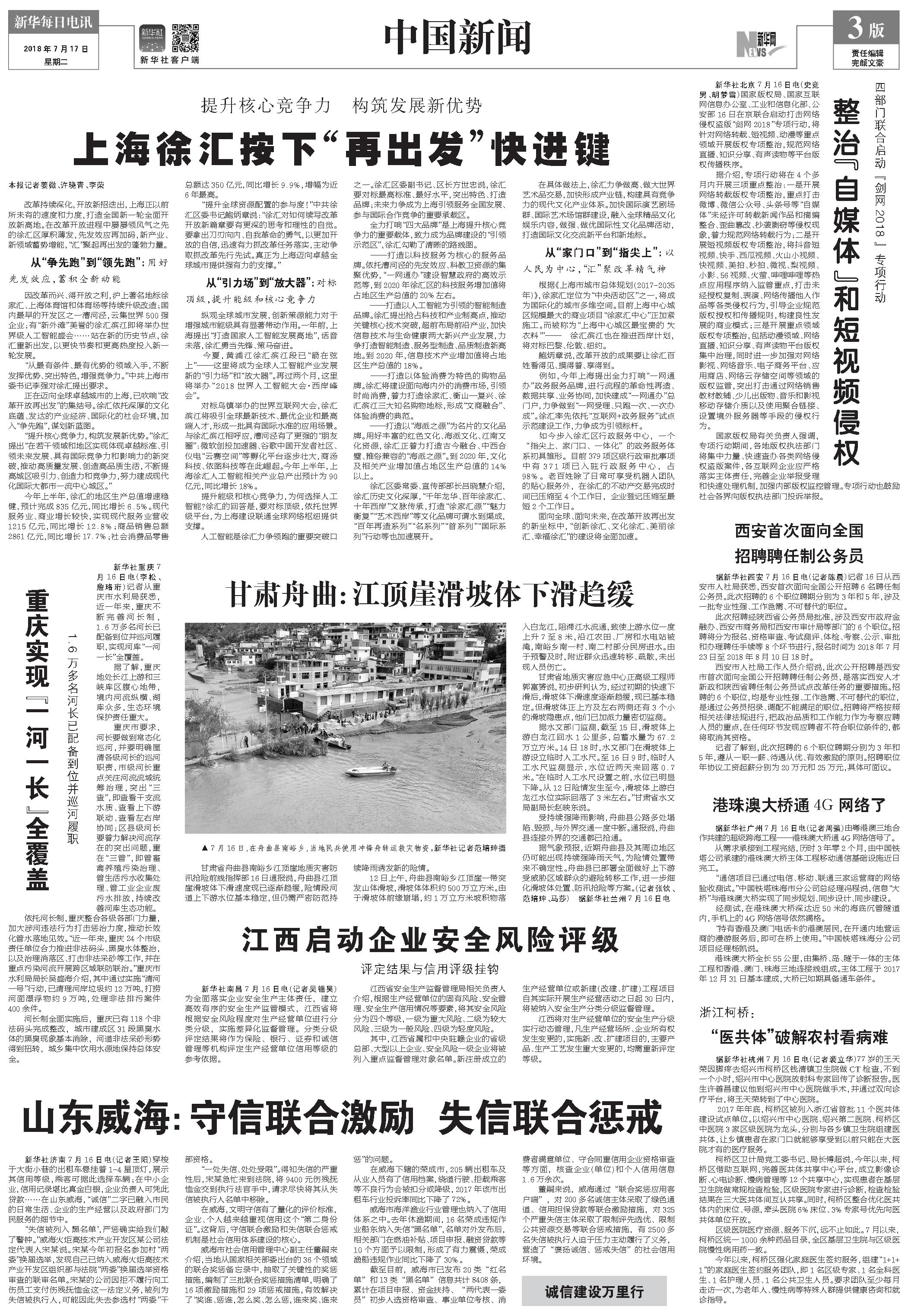 整治“自媒体”和短视频侵权 (2018年07月17日) |