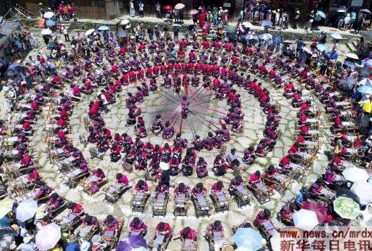 7月18日,农历六月初六,广西龙胜各族自治县龙脊镇大寨村举办一年一度的晒衣节。众多游客前来领略当地民族风情。