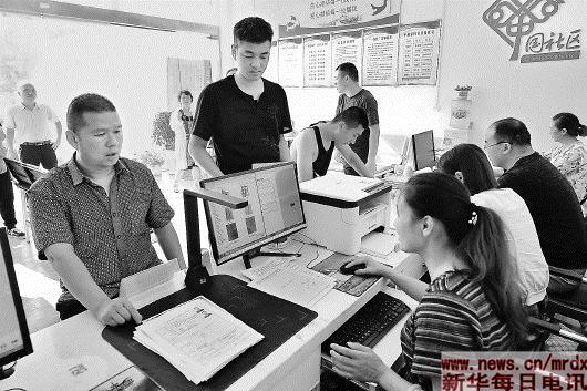 ▲8月8日,居民在花洲街道办事处中州家园社区为民服务大厅办理业务。