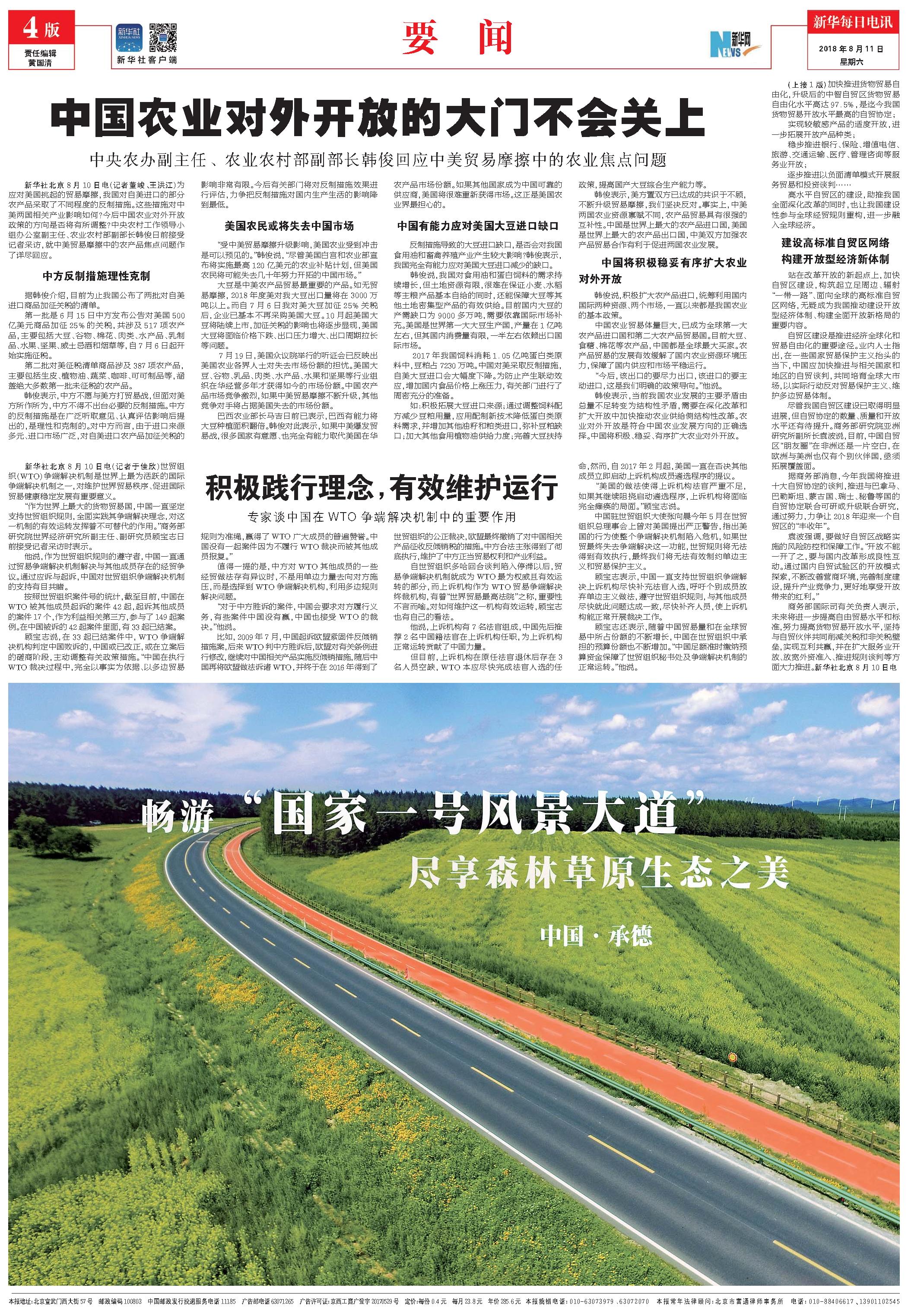 中国农业对外开放的大门不会关上