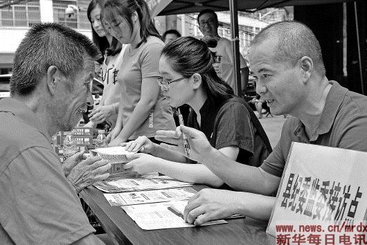 8月23日,连江县纪委监委工作人员(右)在琯头镇街头接待来访群众。 今年以来,福建省连江县纪委监委结合扫黑除恶、移风易俗、扶贫等重点工作,在全县范围开展问题线索大接访活动,将接访台设到群众家门口,面对面倾听群众呼声,及时查处发生在群众身边的有关问题。新华社记者张国俊摄