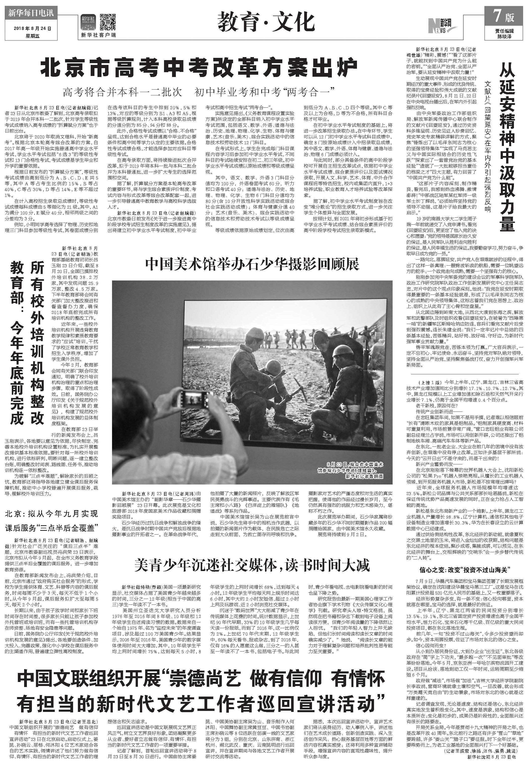 教育部:今年年底前完成所有校外培训机构整改 (2018年08月24日) |