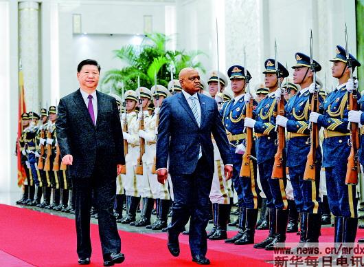 ▲8月31日,国家主席习近平在北京人民大会堂同博茨瓦纳总统马西西举行会谈。这是会谈前,习近平在人民大会堂北大厅为马西西举行欢迎仪式。新华社记者翟健岚摄